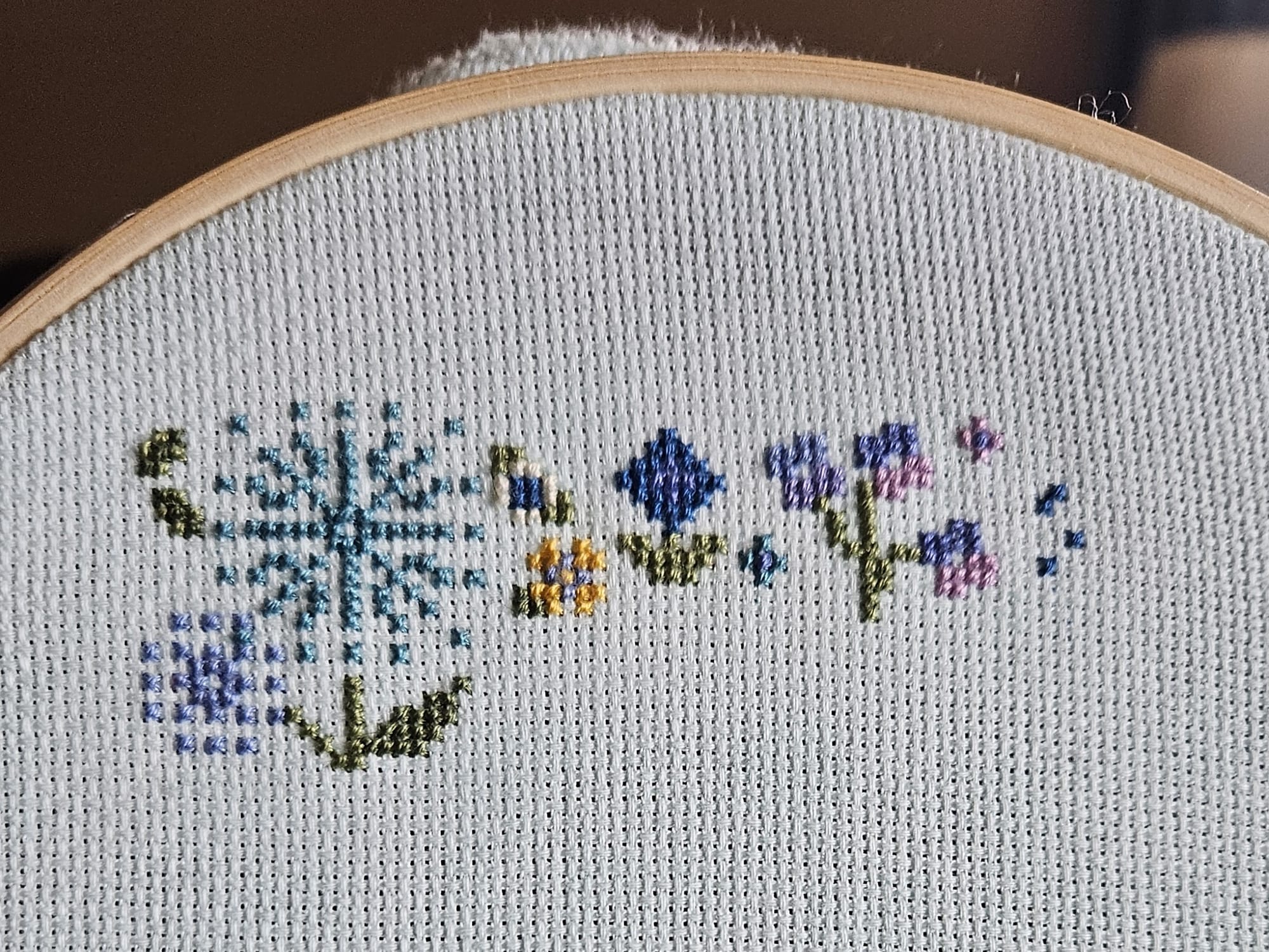 - Finish more projects before starting new ones. I'm already failing at this in the realm of cross stitch, but I think I have a good reason: This year, I'm doing a temperature stitch, an unaccountably popular trend among fiber arts people. (Here's a crochet version; the article includes a section called "So, the Internet Actually Hates Temperature Blankets...," so maybe their moment has passed.) Basically, the colors in the stitch correspond to each day's high and low temperatures, which means I have an Excel spreadsheet and dozens of colors to keep track of. Here's how January is looking so far (through about day eight).