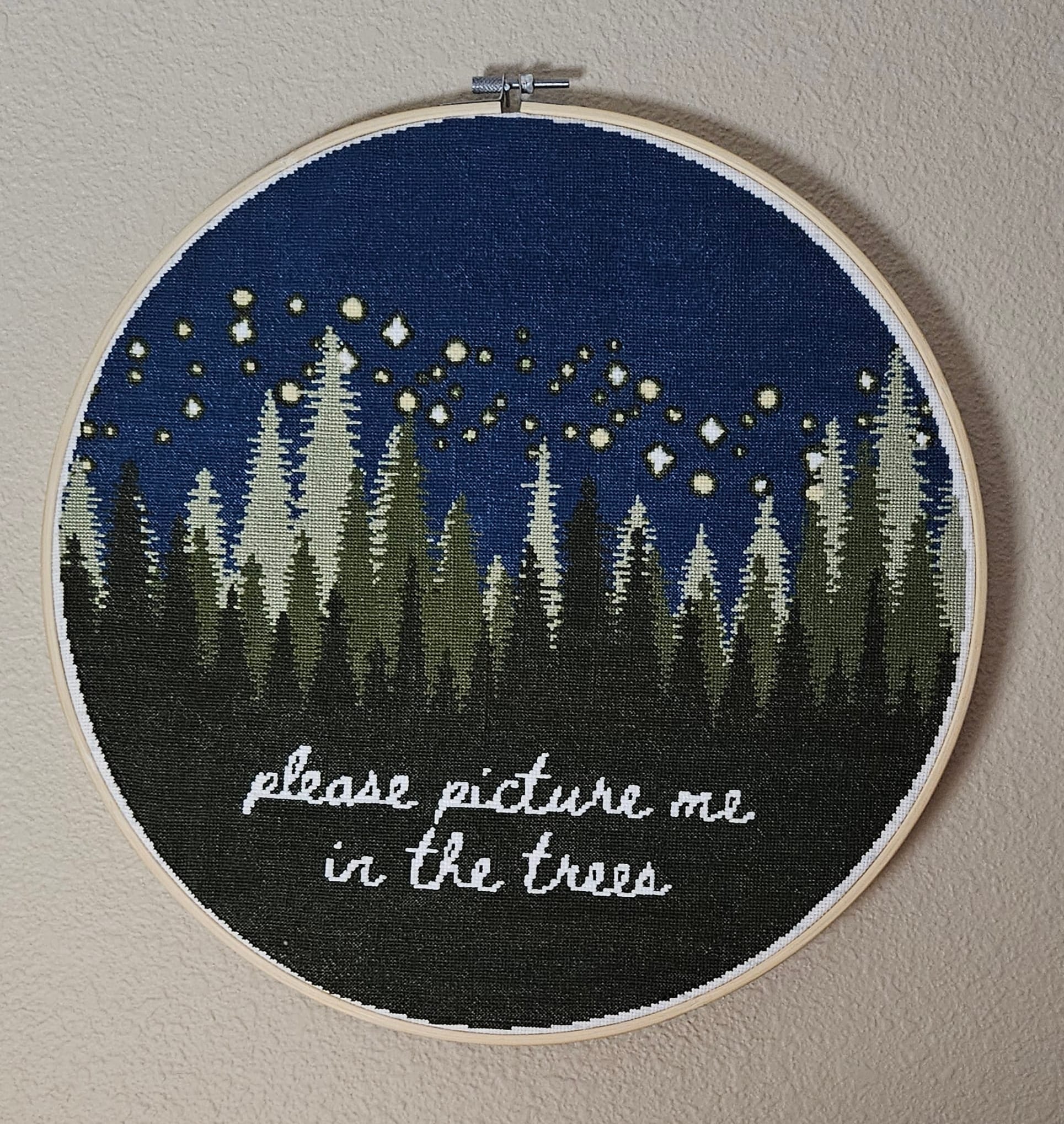 Cross-stitch updates: I finally finished (and delivered) a stitch that I've been working on for my goddaughter since summer 2023. This piece is 14 inches across, which I could not visualize before I started it. I can visualize it now.
