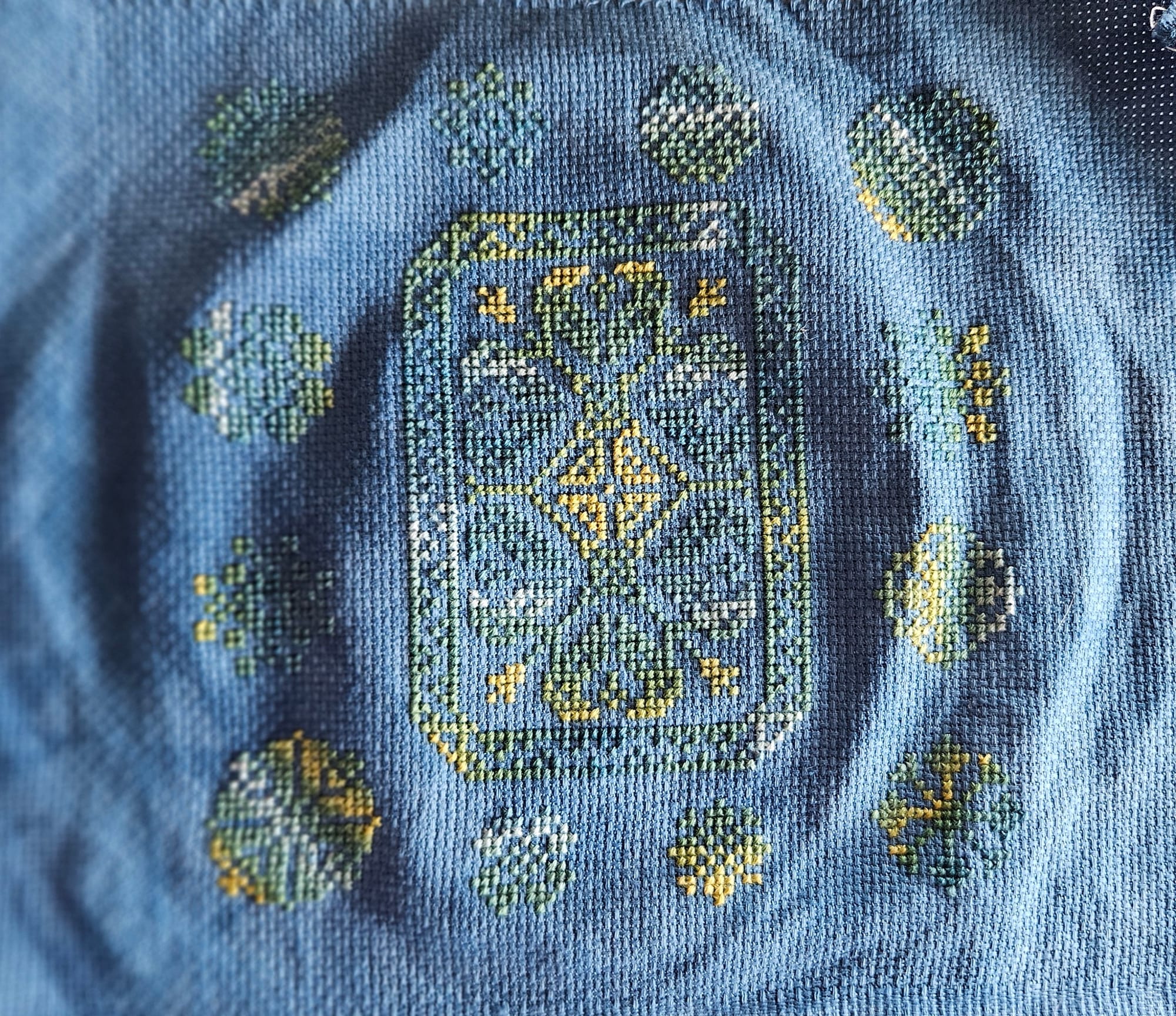 In stitching updates, I finished my Act I variegated stitch (I hoped to have it done by/during the last performance but missed that goal by a day). I also finished October in the temperature stitch. And since I had extra time in the afternoons while sitting through Oscar's track practices, I started the next stamped cross stitch for my aunt.