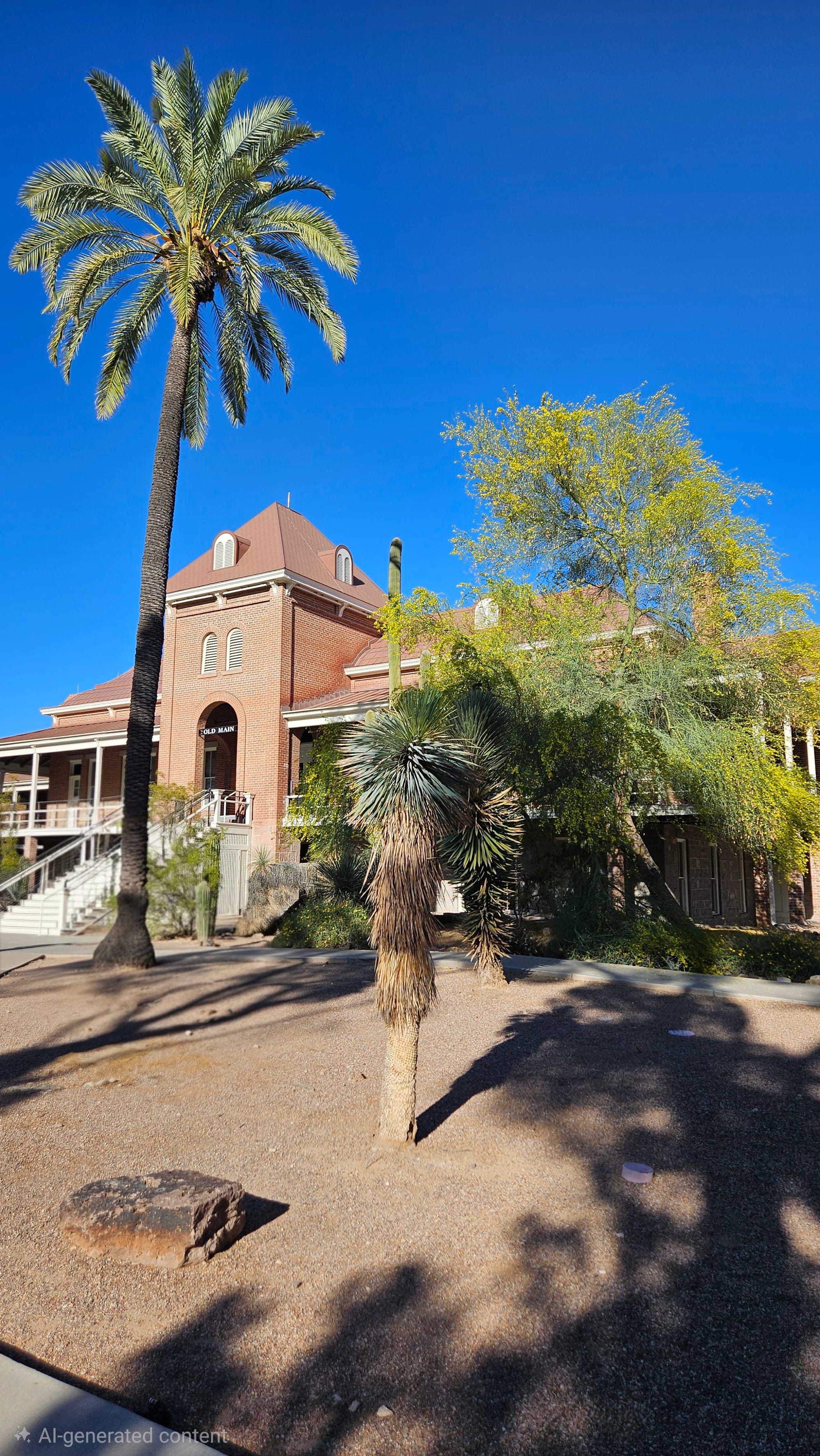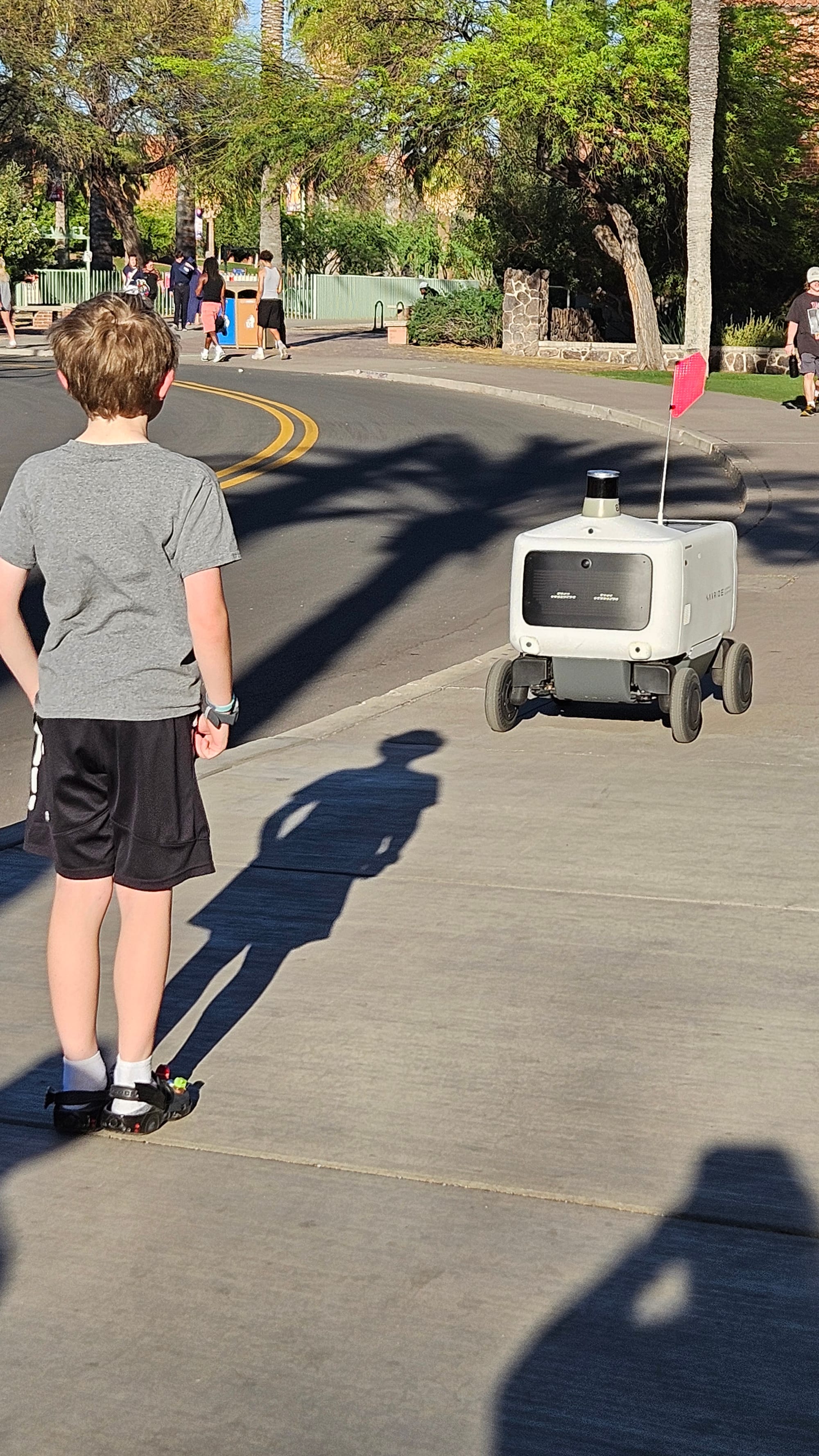 Left: Old Main, the original campus of University of Arizona. Right, Oscar confounding a delivery robot.