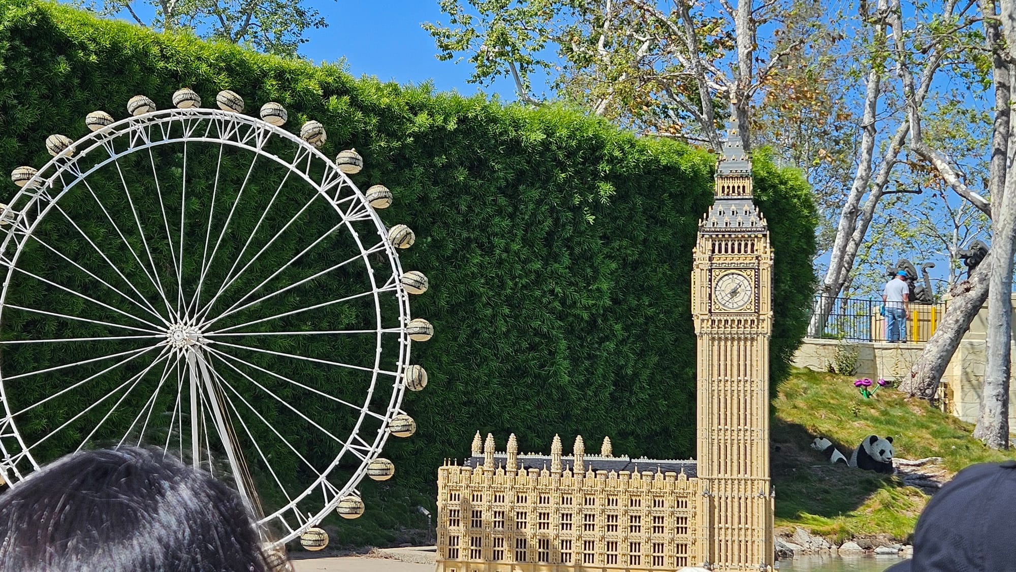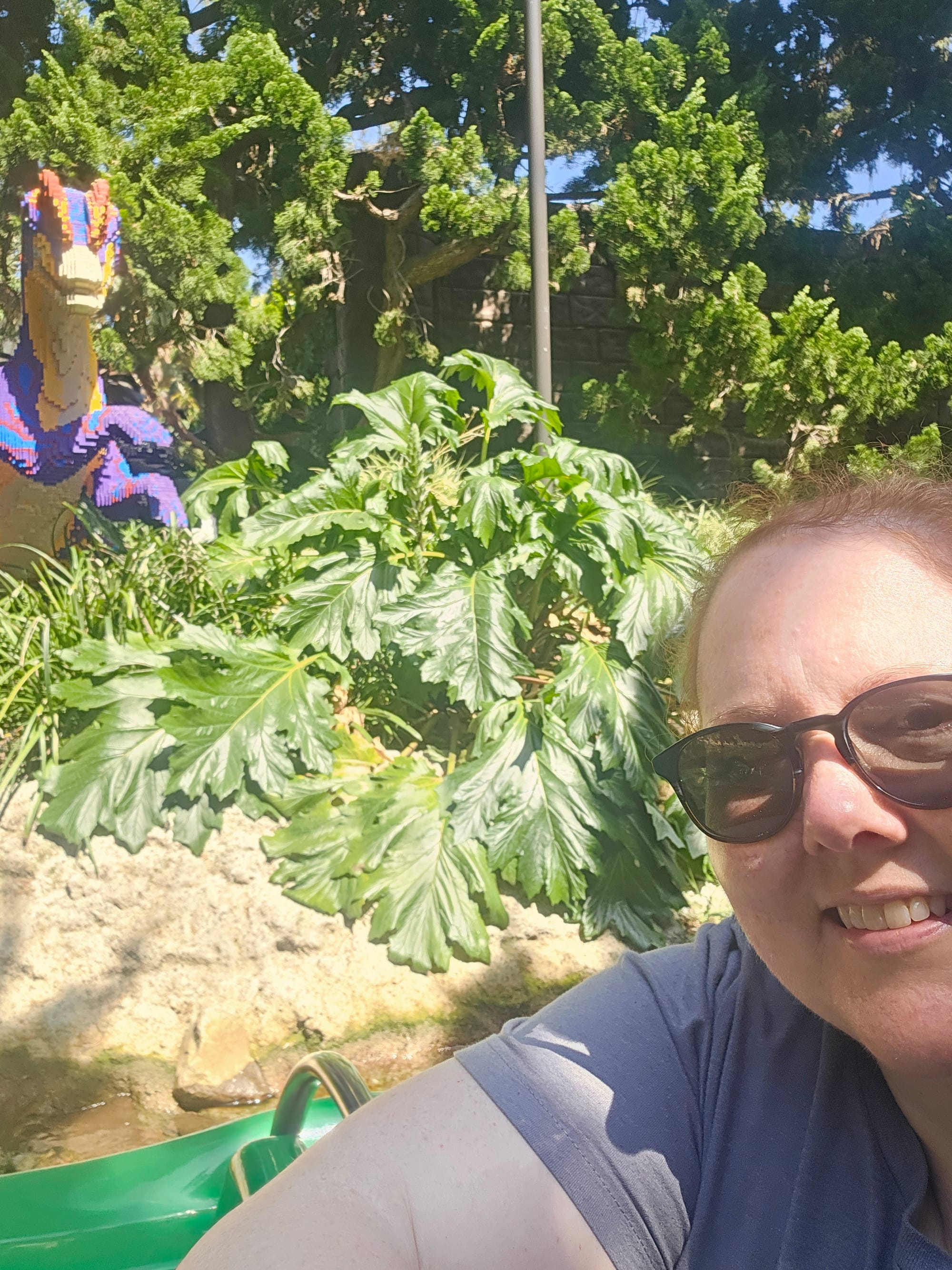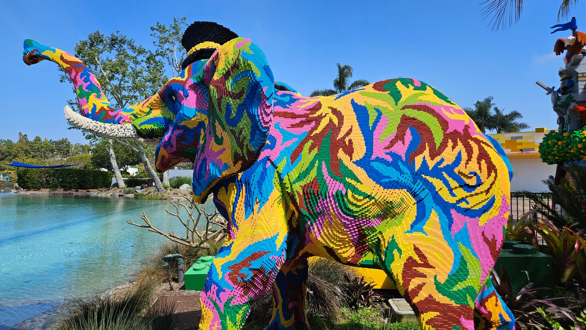 Top row, left to right: Psychedelic elephant; Oscar driving a Lego car; me and Lego dino during the river cruise. Middle row: The SYSTAR System from the Lego Movie; Apocalypseburg from the Lego Movie 2; and the master builder room. Bottom row: Lego London Eye and Big Ben; Lego Mount Rushmore (if you look closely, you can see little Lego workers cleaning George's ear with a giant toothpick); Lego White House and Washington Monument.