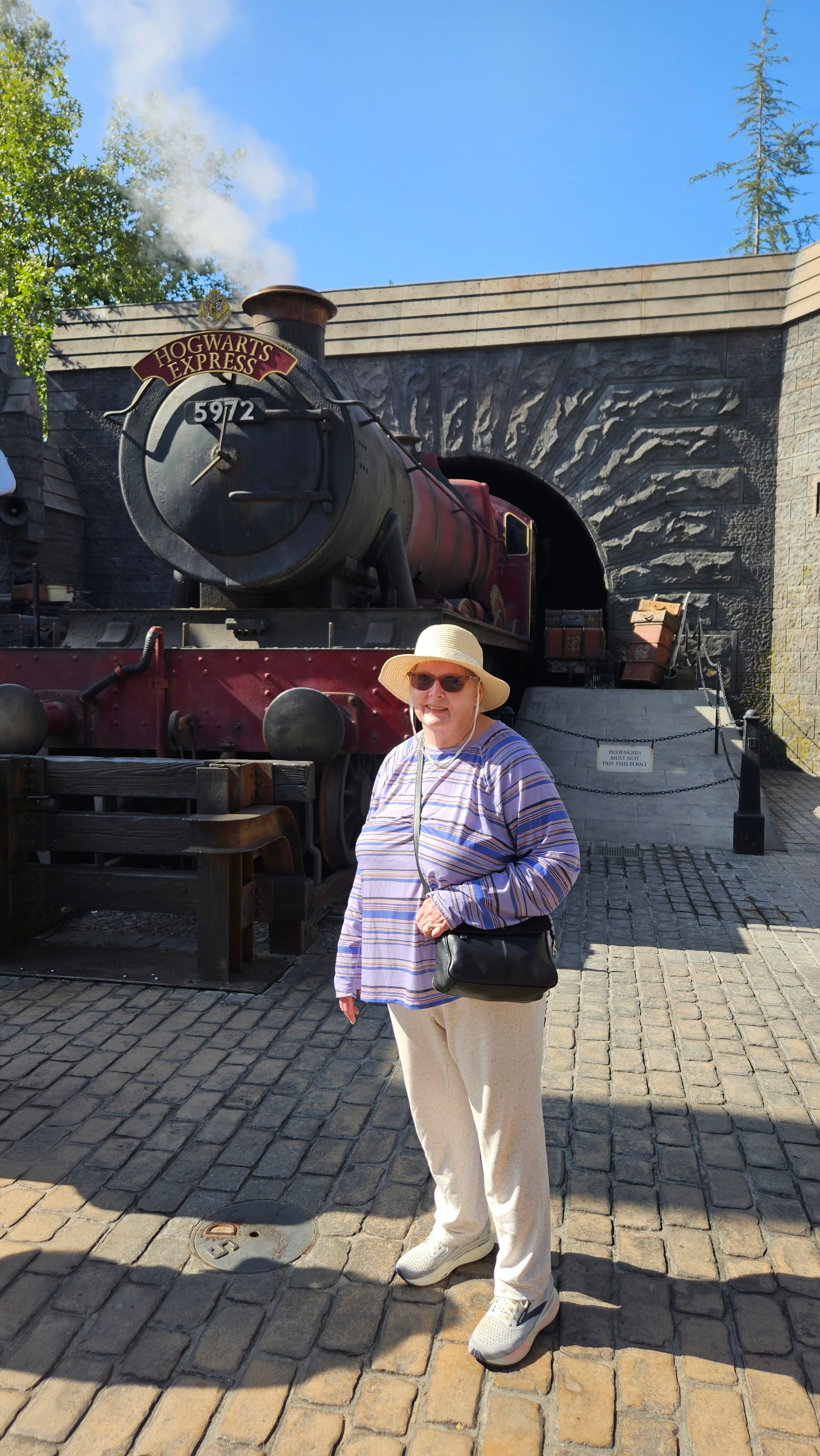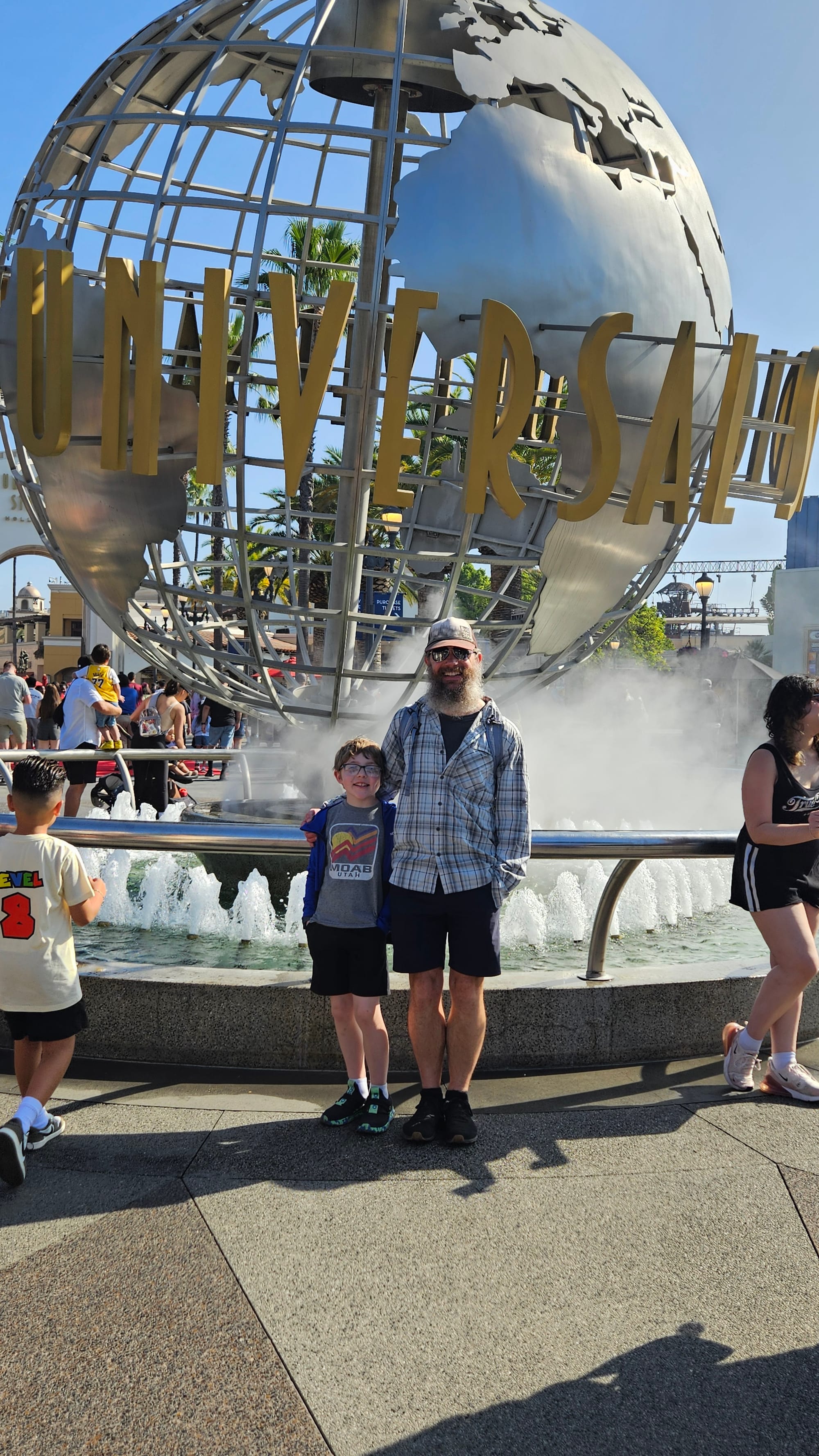 Left to right: The boys in front of the Universal Fountain; Romie and the Hogwarts Express; Super Mario Land (there were spinning coins and everything!)