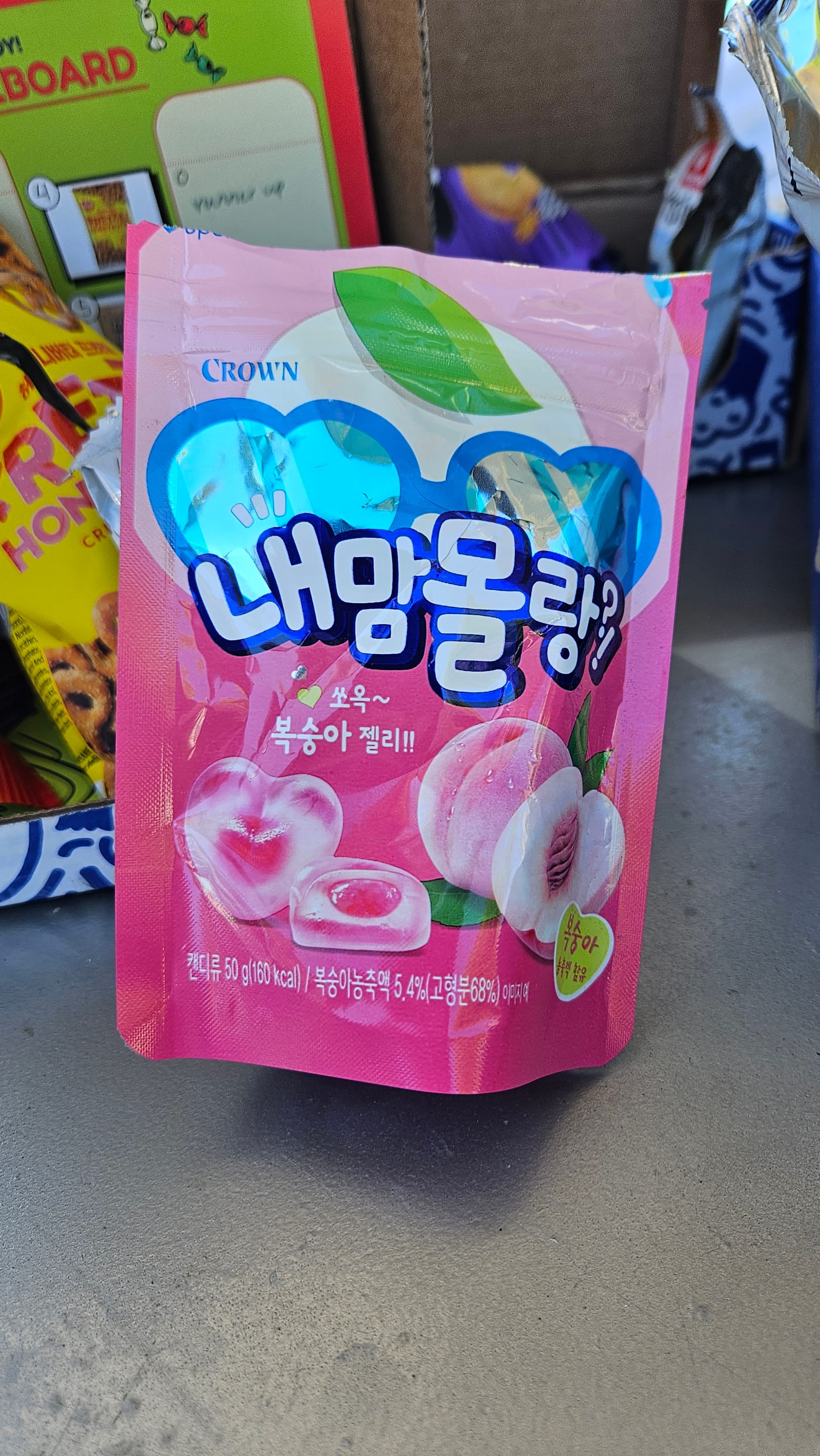 Top, left to right: All four of the boxes after our taste tests; hilarious Monster Munch from Brazil; our ultimate favorite, peach gummies from Korea. Bottom: A couple of shots of the ocean at sunset.