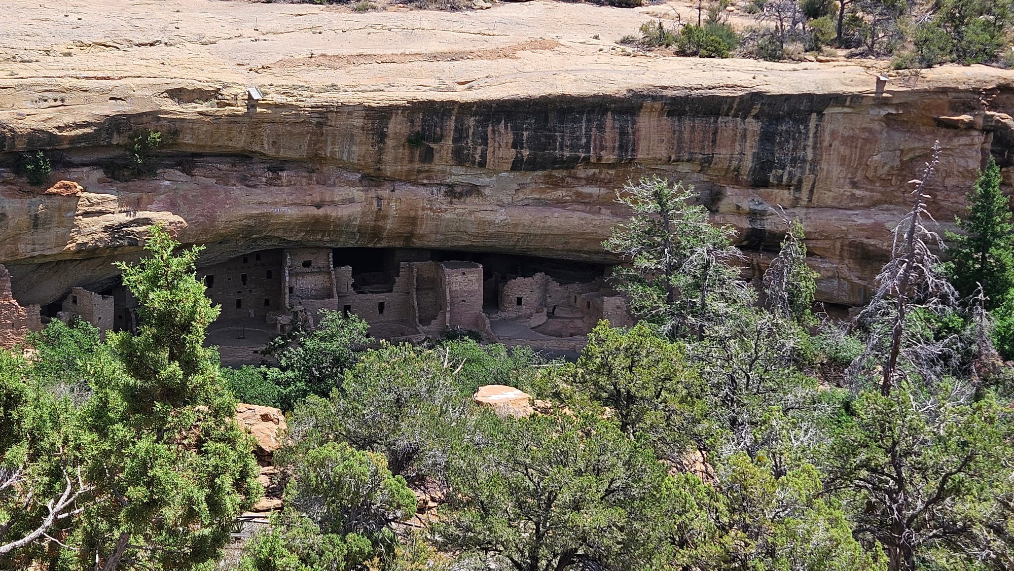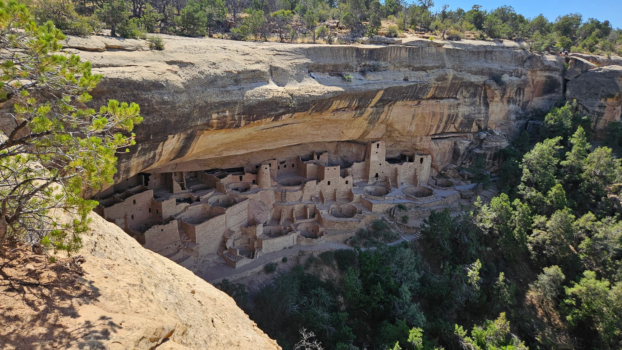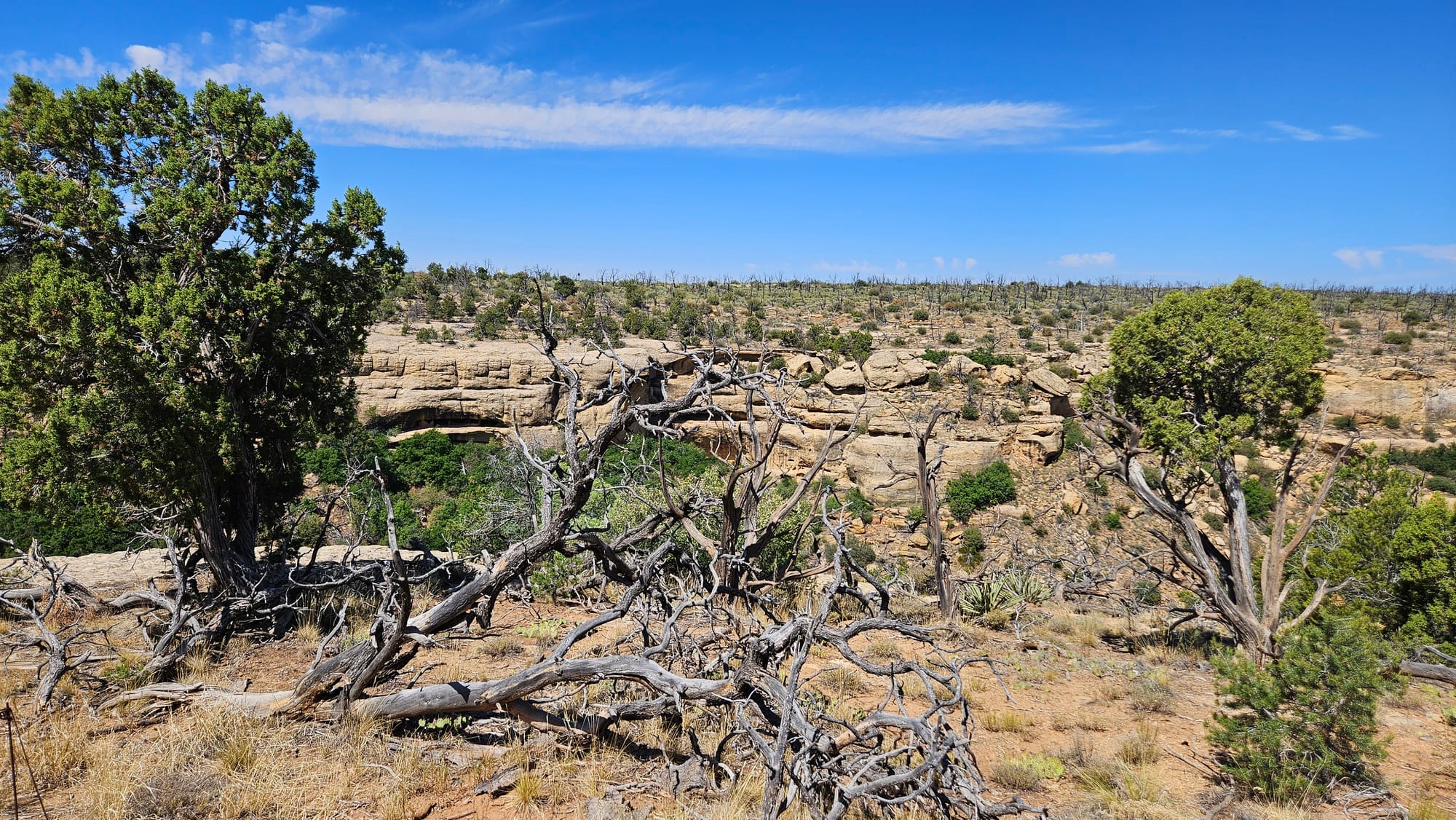Top row: the Pinkerton Hot Springs near Durango, CO. Views from the Cliff Palace viewpoint in Mesa Verde. Middle row: Two different perspectives on Cliff Palace. Bottom row: Some photogenic dead trees in Mesa Verde (I have kind of a thing for dead trees). Oscar and I in Four Corners, standing in Arizona and Utah (me) and Colorado and New Mexico (him).