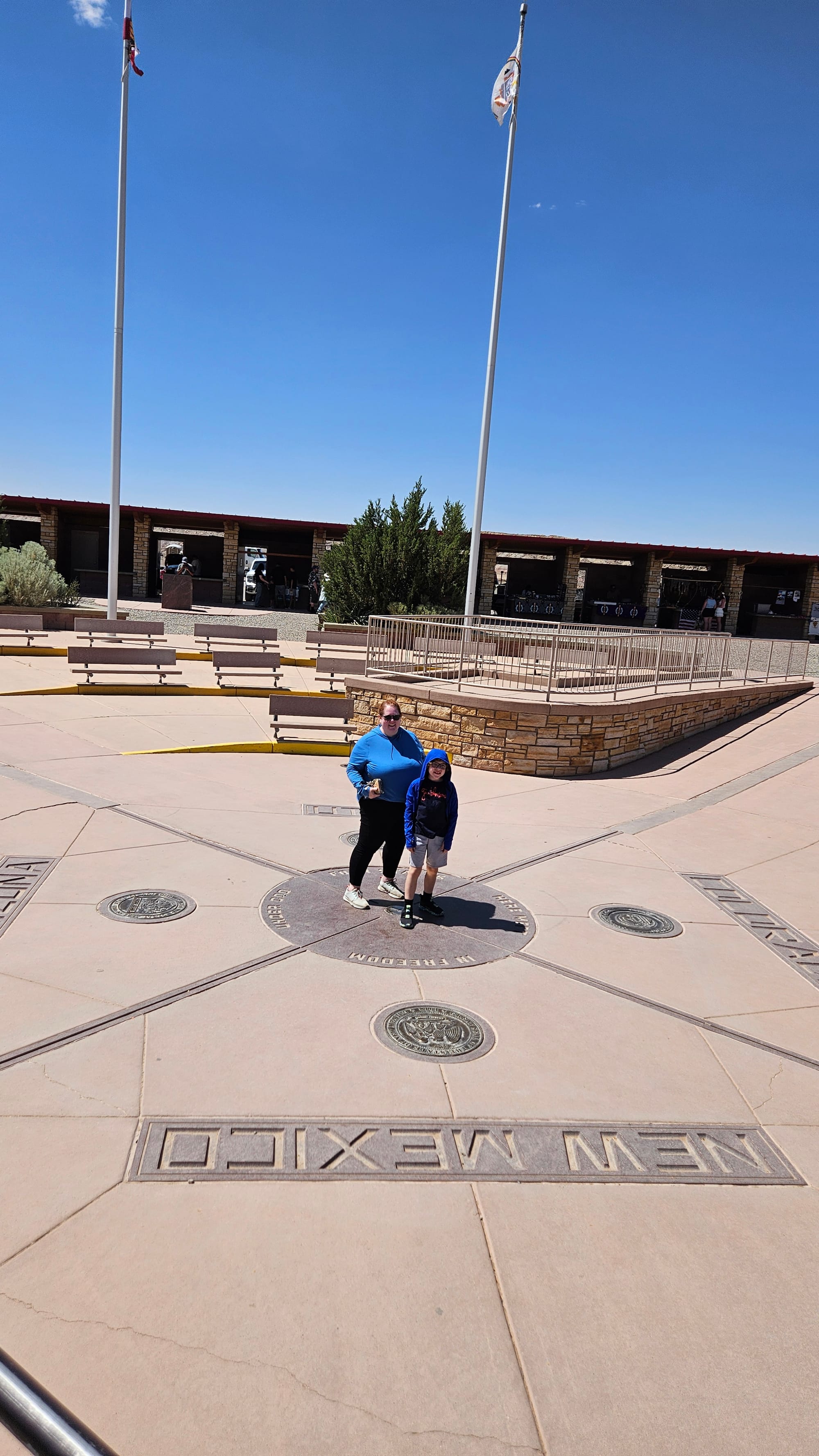 The next morning, we made our way to Mesa Verde, which has incredibly well-preserved cliff dwellings. The boys took a tour down to see what is called the Cliff Palace, and we all enjoyed the views throughout the park, including the Sleeping Ute. From there, we drove to the Four Corners, took exactly three pictures, and ate snow cones.