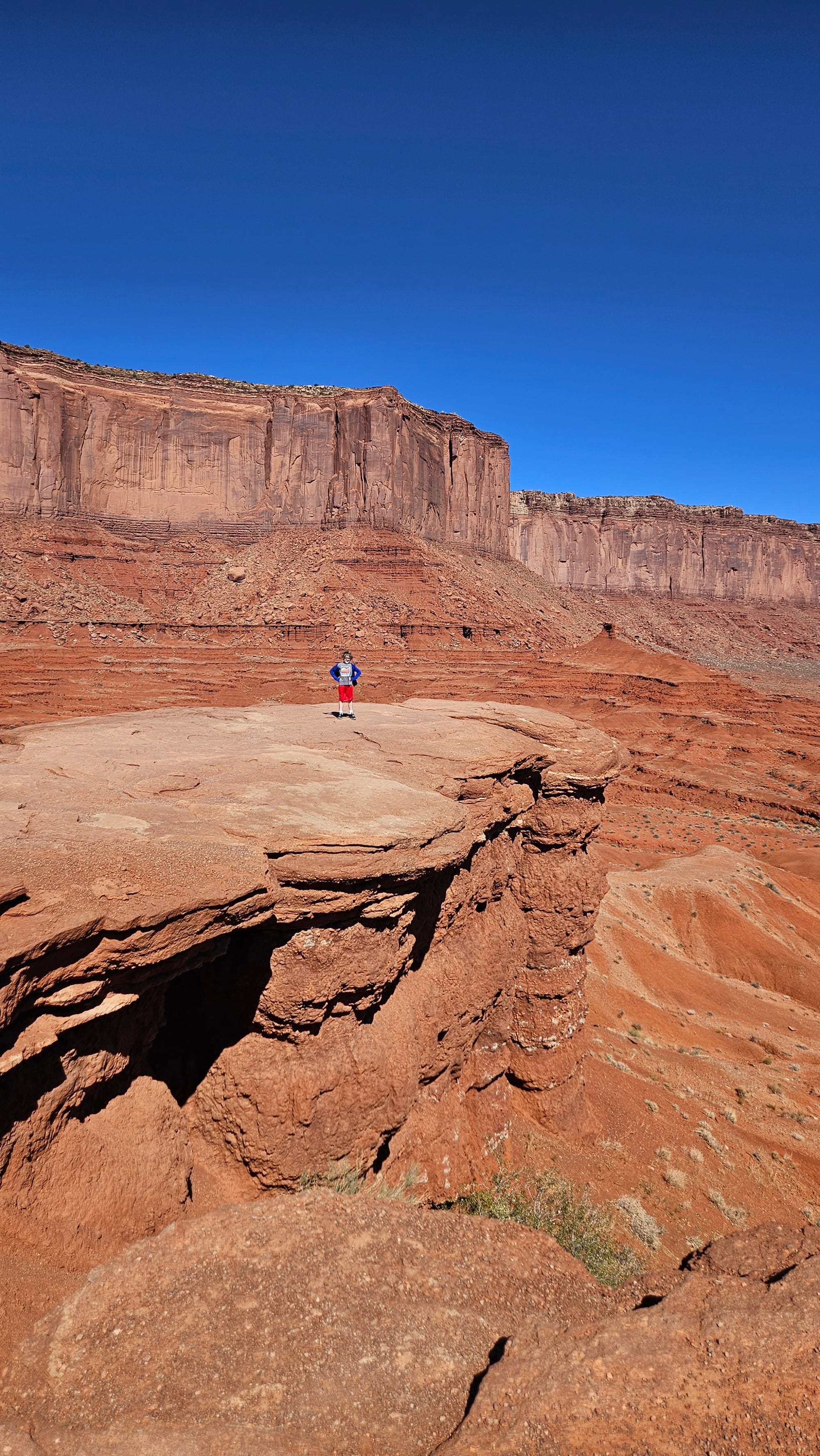 Canyonlands is completely breathtaking. We also lucked out and got a cool, cloudy morning, which both made it really pleasant for wandering around and gave us some gorgeous cloud shadows. The boys climbed one rock called the Whale, but the main attraction here (unsurprisingly) was the view of the canyons.