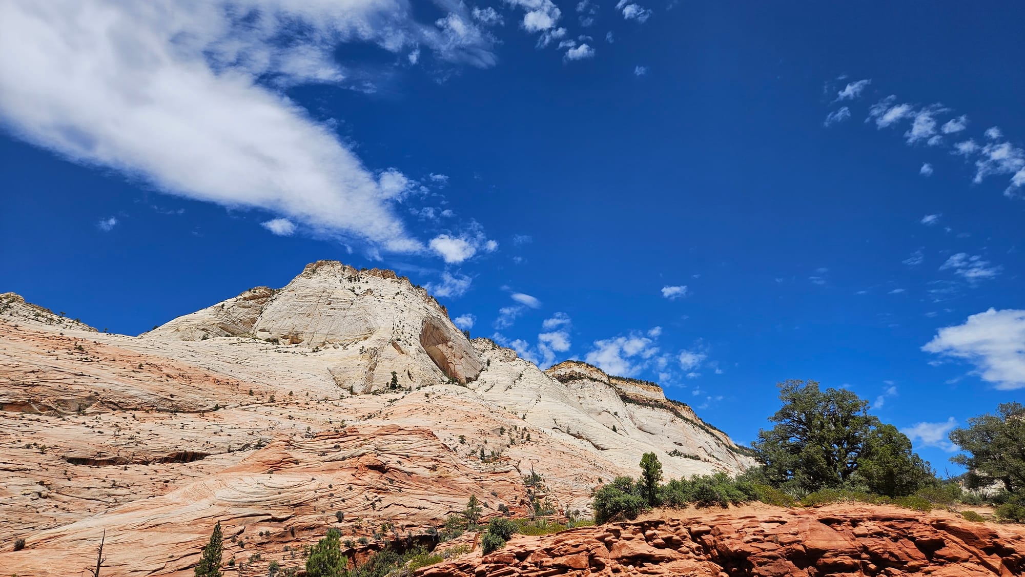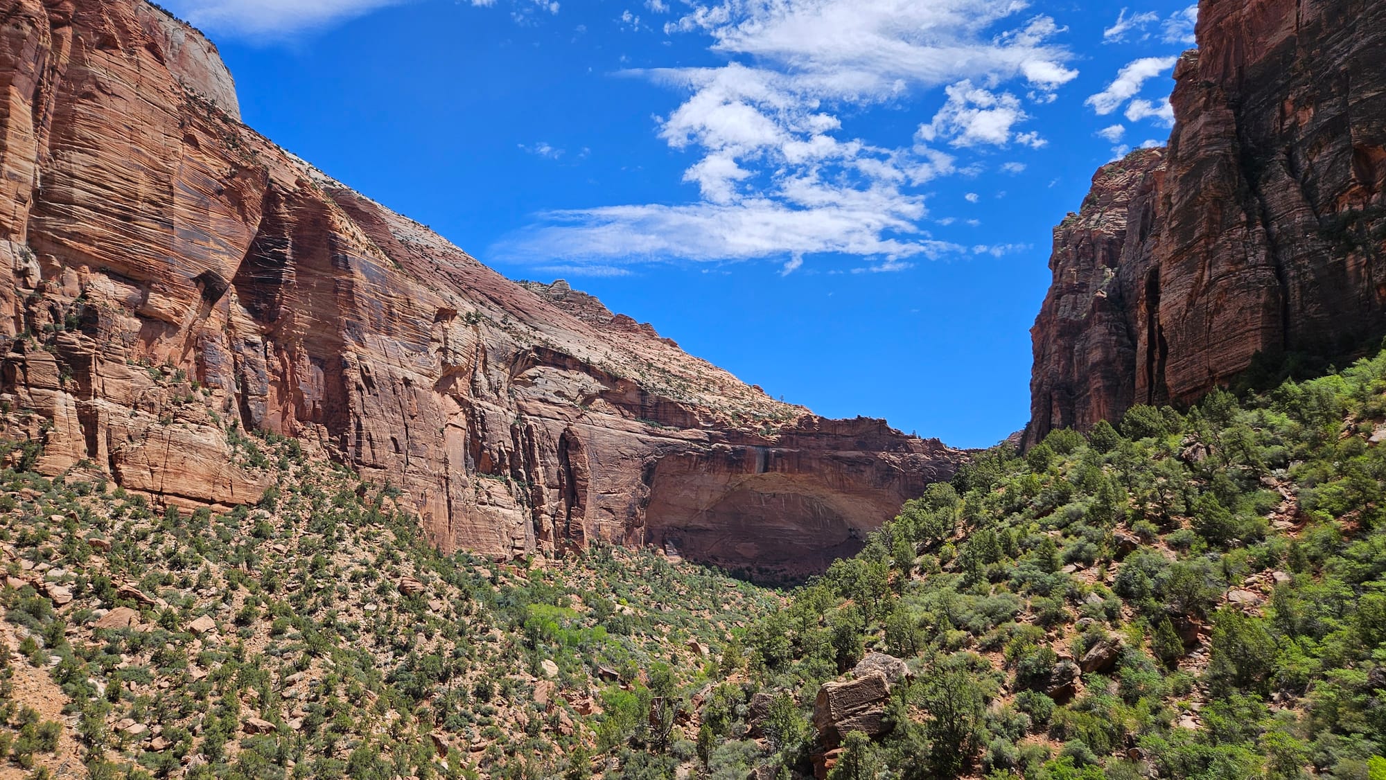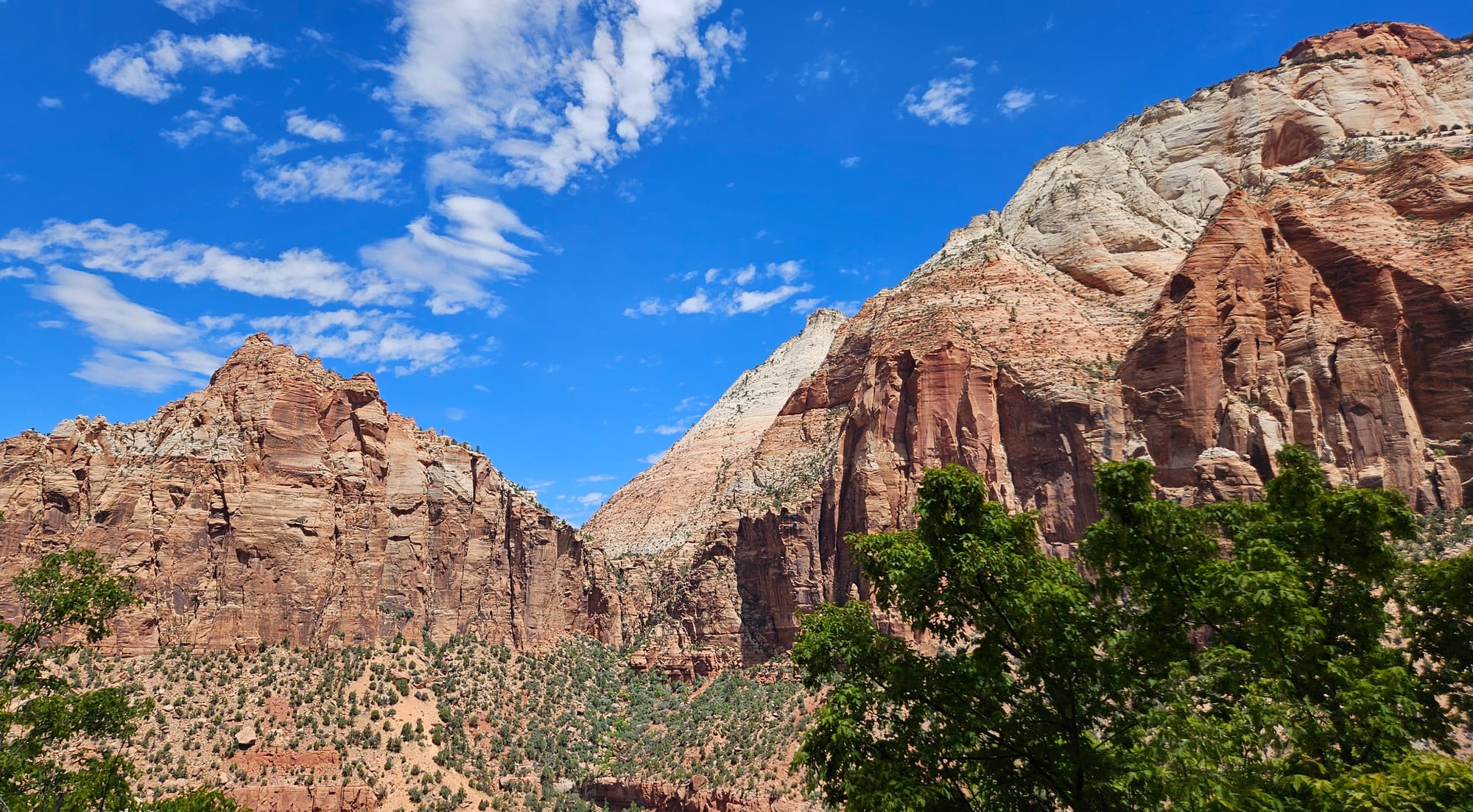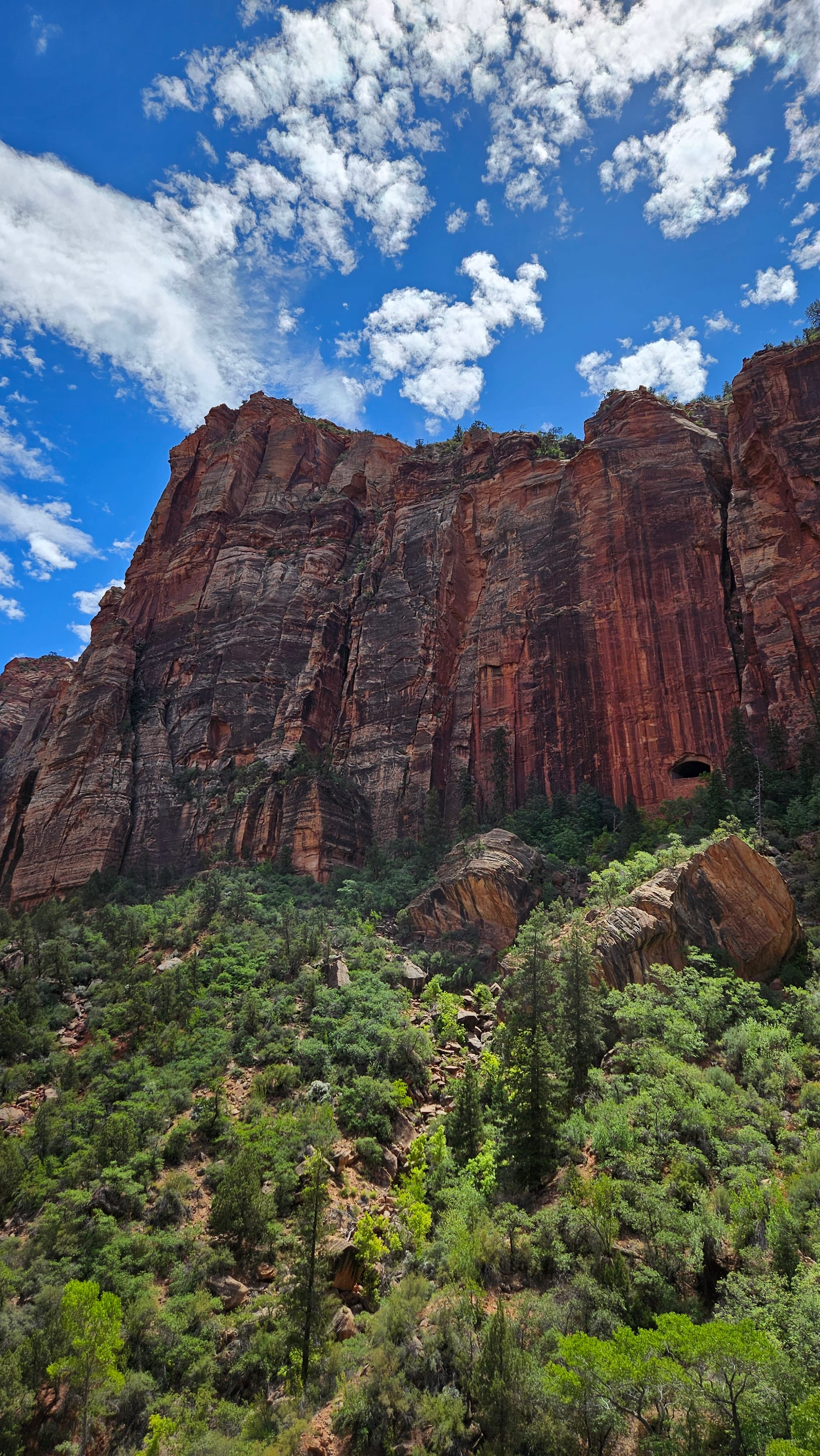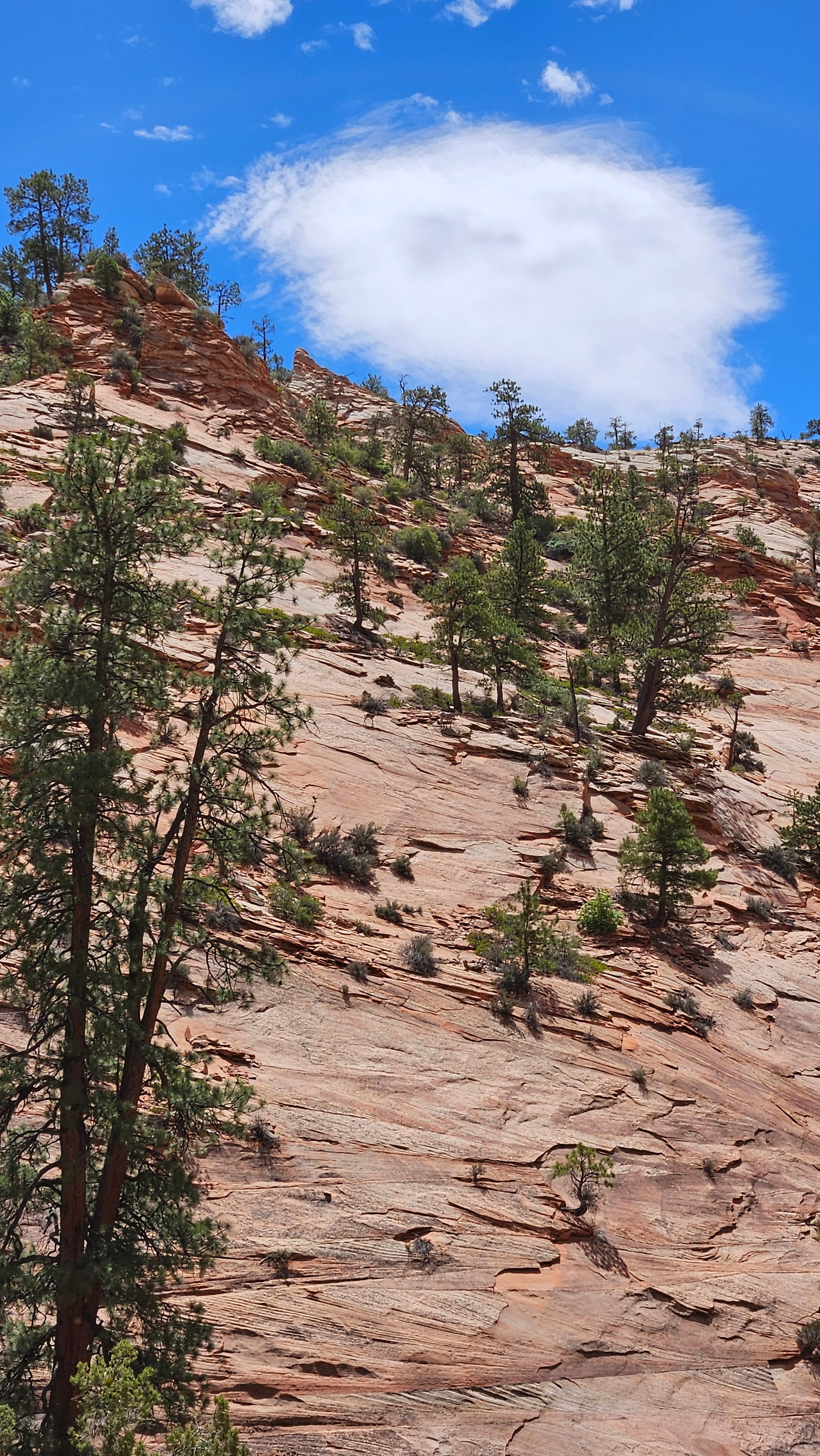 From there we drove on to Zion, knowing that we wouldn't try to tackle the entire park. You can only access most of the land by getting on shuttles at the visitor's center or in one of the nearby towns, which we knew wouldn't be a great fit for us. So instead we used the east entrance, which involves a one-mile tunnel through a mountain that opens into some gorgeous views. We spotted some young bighorn sheep doing their impressive walking-on-impossibly-steep-surfaces thing, but the main attraction here is how close you are to these incredibly tall rock formations.
