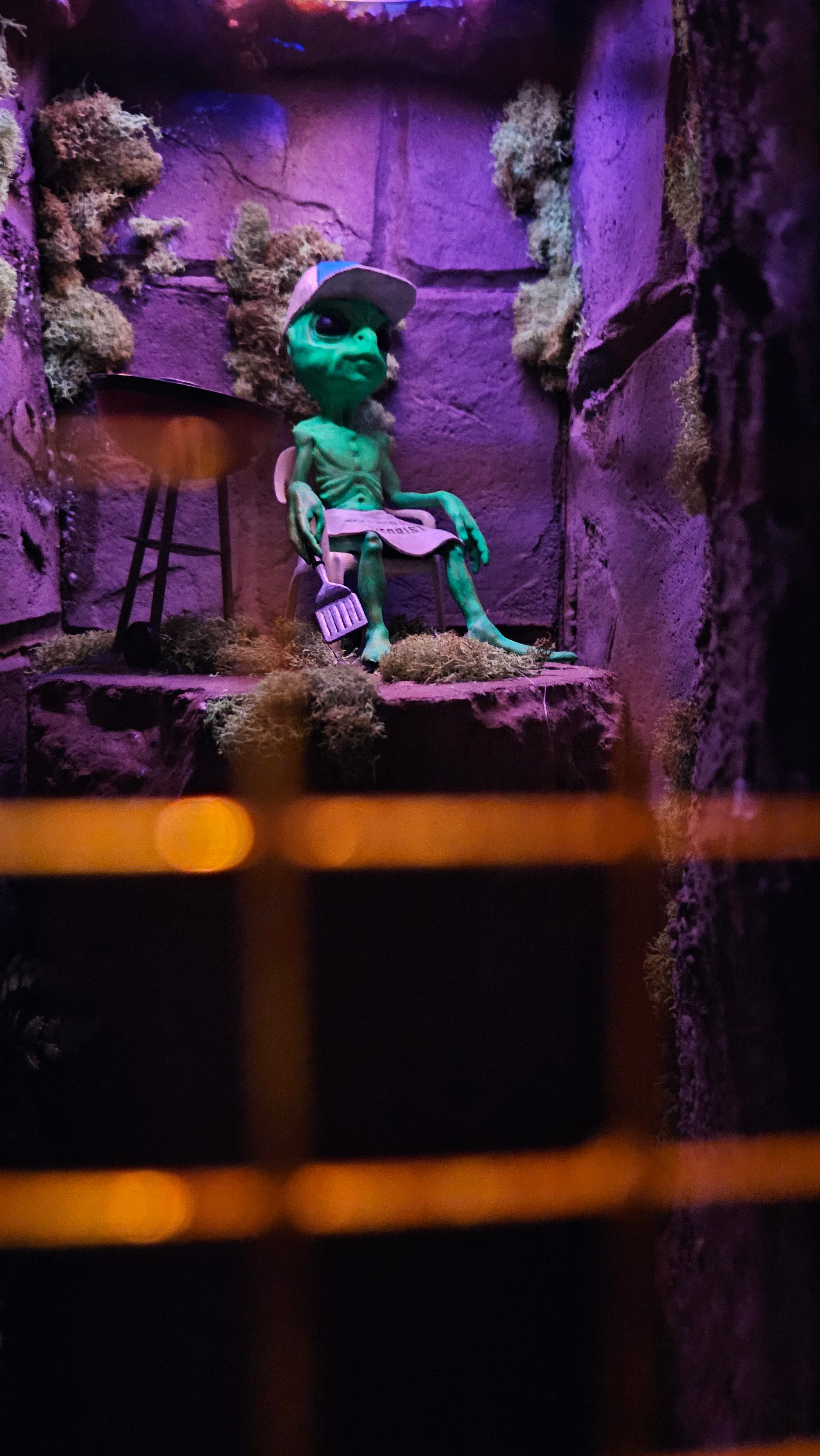 As we drove into town, we happened across a billboard advertising something called Dreamwalk, so after perusing the website, we decided to spend the afternoon there– "there" being inside a mall in Orem, a suburb of SLC– and it was a lot of fun. Basically, it's a blacklight scavenger hunt involving a complicated story about a lava-like substance, fairies and other fantastical creatures, and a planet of fun-loving robots. We really enjoyed it, especially because it was air-conditioned and gave us a break from the 100+ degree temps.