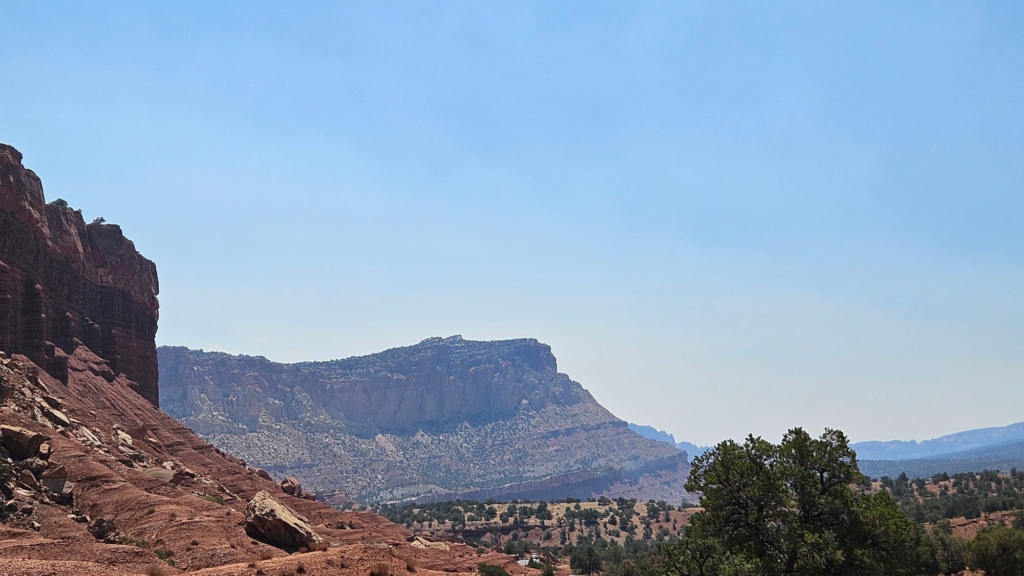 Next up was Capitol Reef, which I'd never heard of before last year. This is likely because it's in the middle of nowhere– but not that far from a place called Monroe Canyon, which is currently on fire. As a result, all of the power had been shut down to the entire region. I'm not sure how much that contributed to the park's general emptiness; we saw very few people and almost no wildlife. It was almost eerily quiet.