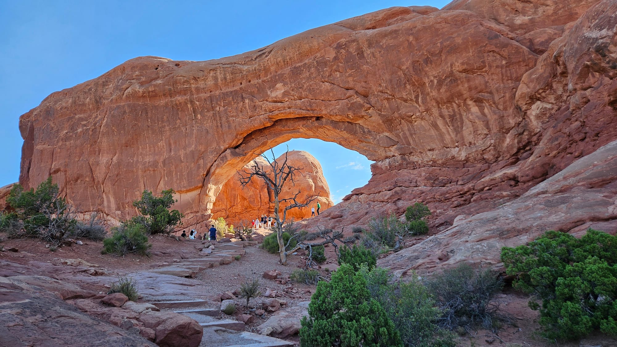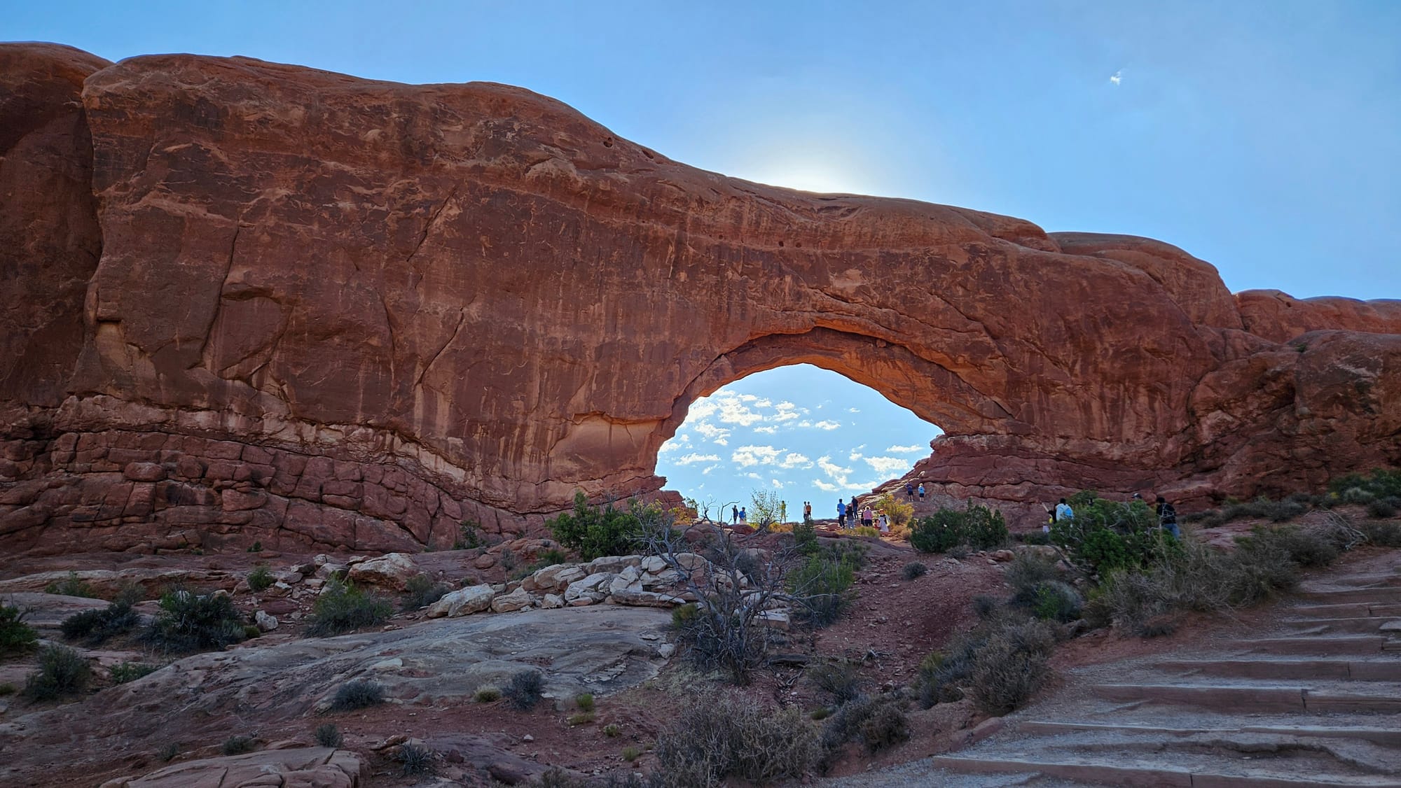 And for our last park, we went to Arches, which Jeremy and I had visited and fallen in love with last year. This was one of our busier stops, so it came in handy that we already had a sense of what we wanted to do and the order to do it in. We hiked up to the Windows and through some more pink sand to see the smaller Sand Dune arch. It was really amazing to compare how the park looks in the morning to how it looked when we went in the late afternoon on our last trip.